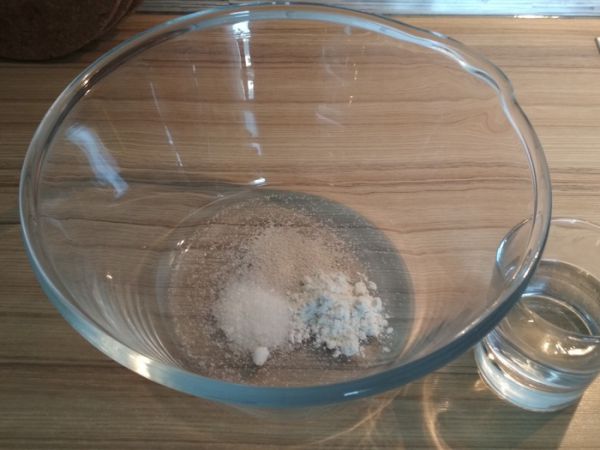 Приступим. Чайная ложка сахара, чайная ложка муки, чайная ложка дрожжей, полстакана теплой воды воды.