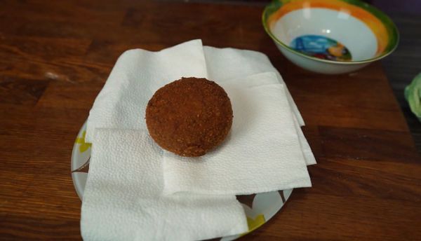 Достаем и выкладываем на бумажное полотенце или салфетки, чтобы избавиться от излишков масла.