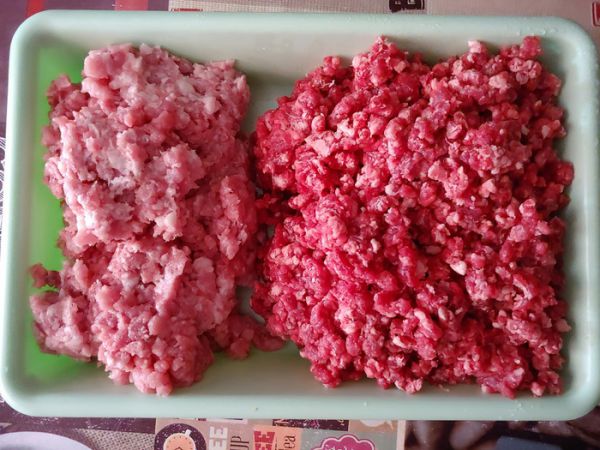 Целесообразно было бы засолить оба вида фарша раздельно, но меня неожиданно посетил приступ лени и я, просто, ещё раз пропустил фарш через мясорубку (на этот раз через решетку 2.5 мм и оба вида вместе).