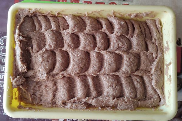 Здесь, вместо измельчителя, можно было обойтись мясорубкой - подмораживая и пропуская через неё фарш несколько раз, постепенно вмешивая воду, но с измельчителем мне показалось проще.