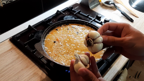 На этом блюдо почти готово, остаётся только извлечь и выкинуть чеснок, а так же хорошо перемешать содержимое казана.