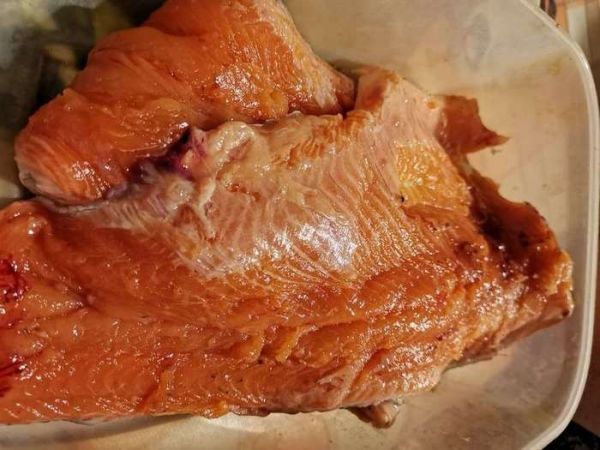 Через 12 часов сливаем образовавшийся тузлук, иначе нижняя половина филе переселится.