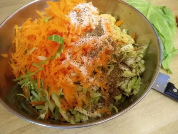 Начнем с коулслоу. Салату надо настояться в холодильнике не менее 2-3 часов.