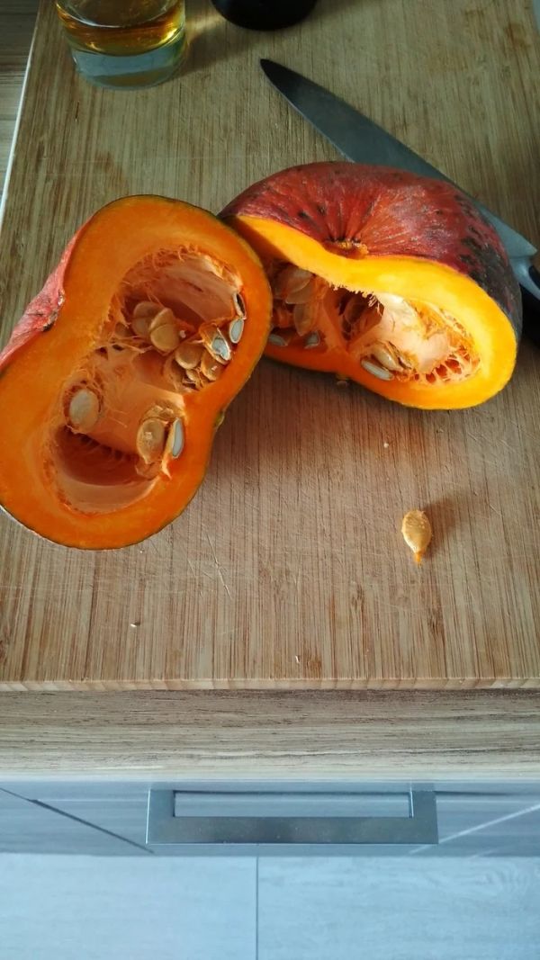 Вот такая тыковка мне попалась. Общий вес 800 грамм. Вес после очистки 550 грамм