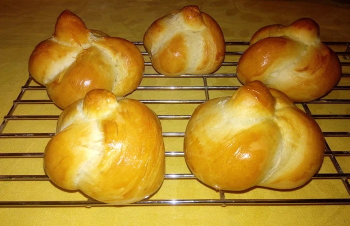У этих булочек очень мягкое, но абсолютно не липкое тесто, поэтому к формованию можно привлечь детей.Тесто не требует выбраживания. Сразу после замеса формуются булочки и через 1 час расстойки помещаются в духовку.