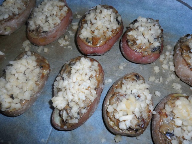 Ставим в духовку… Обнявшись с Белочкой, втыкаем 10 минут в пустоту, ловя носами божественные ароматы… Достаём… Трём сыр… Засыпаем им почти готовые формочки опять в духовку, пока сыр не зарумянится…