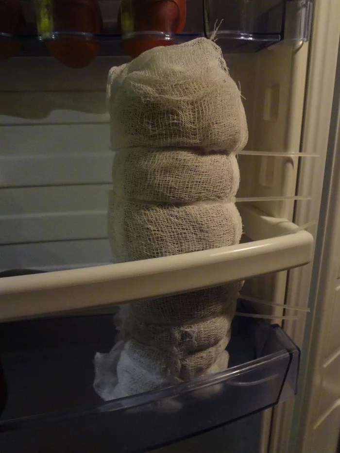Вешаем мясо на дверцу холодильника или на холодную лоджию/балкон (5-12 градусов). Важно, чтобы была циркуляция воздуха и желательно влажность 50-70%. Моё мясо днём висело в холодильнике, а на ночь я вешал его на лоджию. Заняло это у меня 2,5 месяца.
