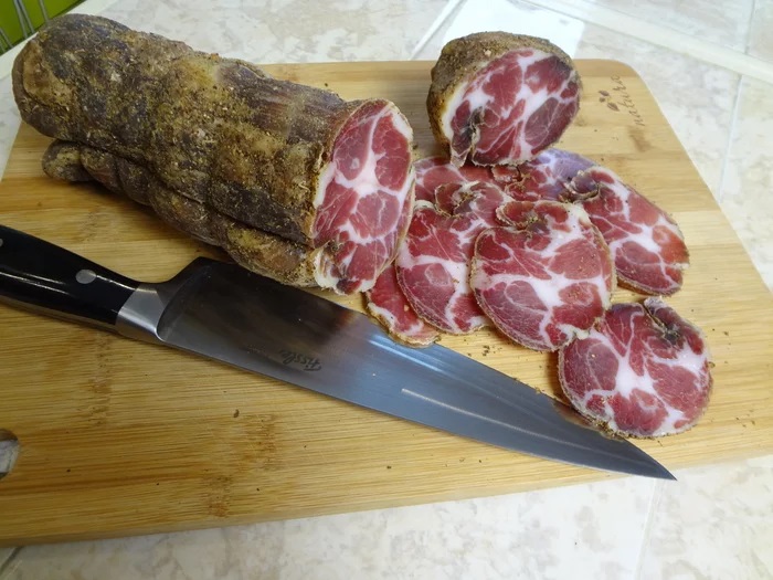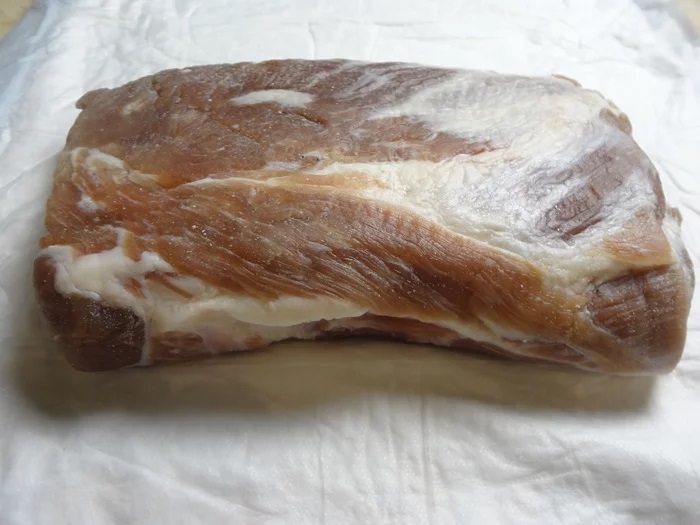 Итак за 2,5 месяца мясо похудело с 1,5 кг до 0,8 грамм. Почти половина веса. Давайте его порежем.