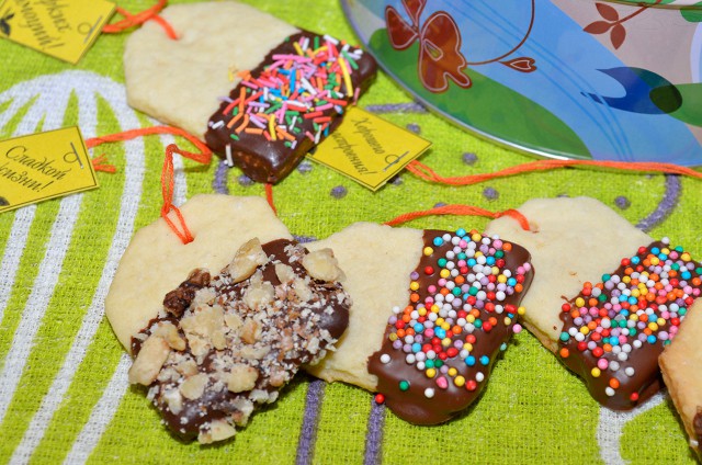 Сразу посыпать шоколадную часть измельченными орехами, кондитерской посыпкой и сахаром. Выкладывать на застеленный пергаментом противень на небольшом отдалении друг от друга, оставить до застывания шоколада.