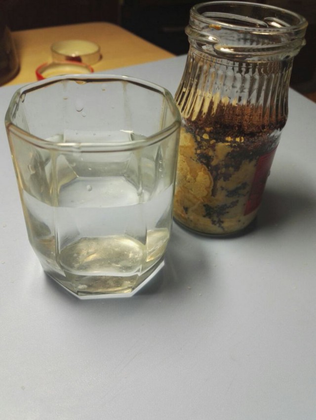 Холодную воду! Не теплую, не горячую как в мирских, гуманных рецептах. Нет, мы служим Сатане и действуем вопреки человеческой логике!!! Заливаем холодную воду, так чтоб жидковато было, и хорошо вымешиваем, до полного растворения сахара.