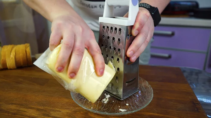 Заранее подготовим начинку:- Трём сыр))