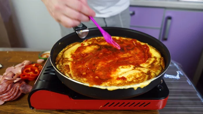 Смазываем томатным соусом (2 столовых ложки должно хватить).
