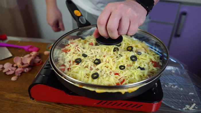Накрываем крышкой и ждем пока сыр расплавится.