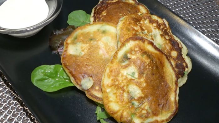 В этот раз я решила сделать оладьи с ветчиной и зеленым луком.