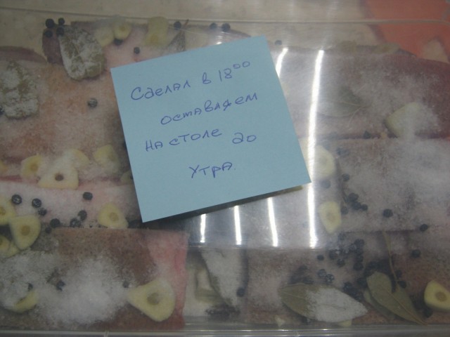 Укомплектованный контейнер оставляем на столе часов на 15-20. В тепле сало лучше и быстрее возьмет соль.
