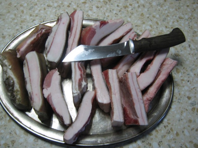 Режем сало на нужные брусочки. (размер - кому как нравится)