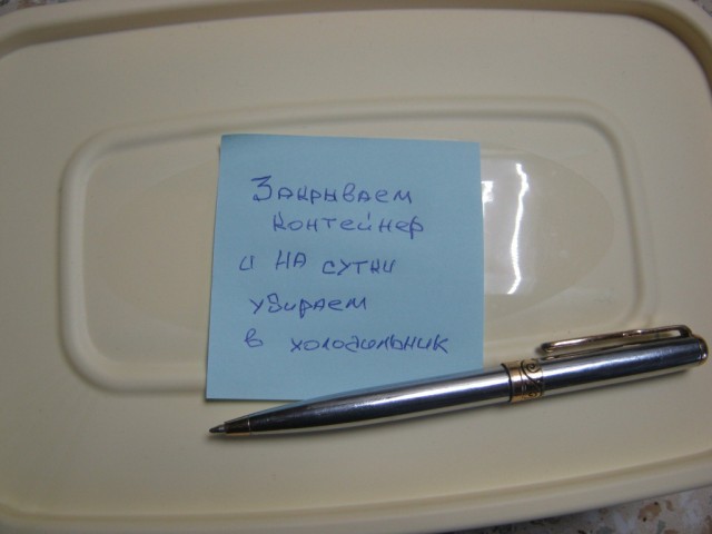 Контейнер закрываем, и убираем в холодильник минимум на сутки. Через сутки его можно раскладывать по индивидуальным пакетам и убирать в морозилку. Собственно оно уже готово и можно есть! Я закончил. Всем Добра!