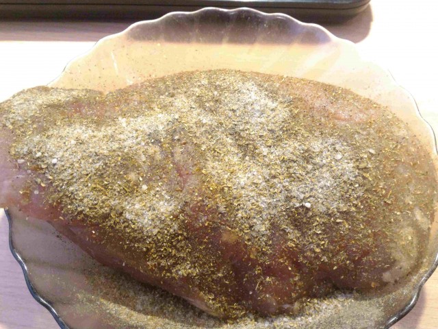 Хмели-сунели (смешивают на рынке) и черного перца, всего 6грЕсли под пиво, то можно больше соли и разного перца, но у меня - заказ от