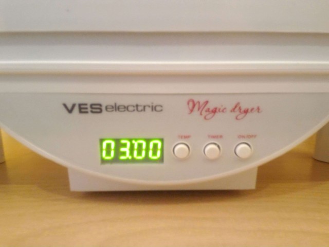 Ну и время 3 часа. Через час нужно перевернуть подсохшей сторонойвниз. По окончанию горячей сушки включаю простой обдув ещё на 4 часа