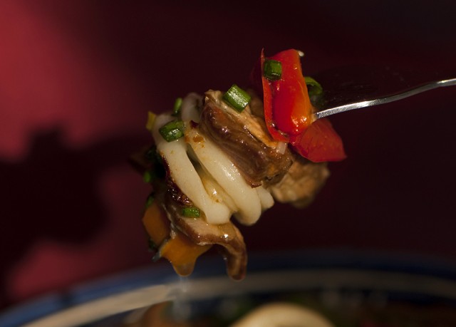 В моих ебенях, на любом базарчике вы сразу споткнетесь о горы лагмана, тянутый, давленый, резаный в любых размерах и количествах. Это весьма популярное тесто, поэтому тянуть его дома самостоятельно, мало кому приходит в голову.