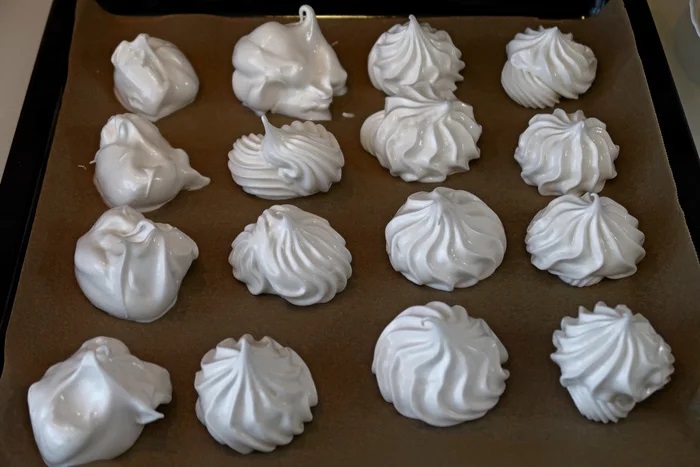 Духовка у меня газовая и минимально возможная температура в ней около 120 градусов. А безе нужно готовить при 80 градусах три часа, поэтому я использовал термостат, работающий на нейронный сети. Он отслеживал показания аналогово термометра в духовке и периодически выключал и включал огонь. Но термостат не слишком часто бегал к духовке, поэтому средняя температура была выше нужной и безе карамелизовались и пустили капли сахарного сиропа по краям.