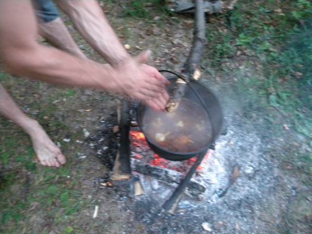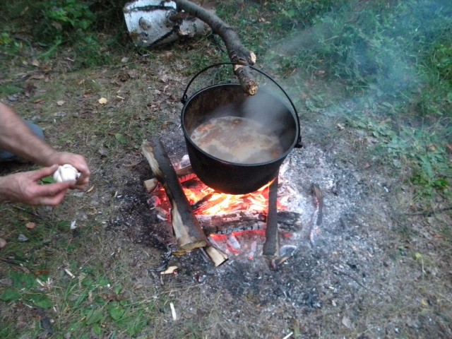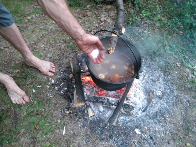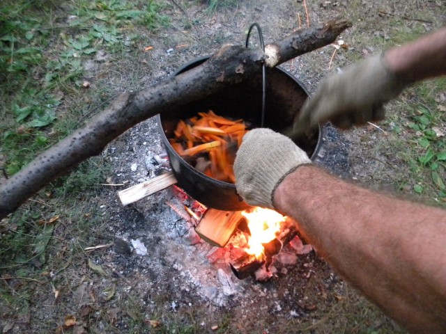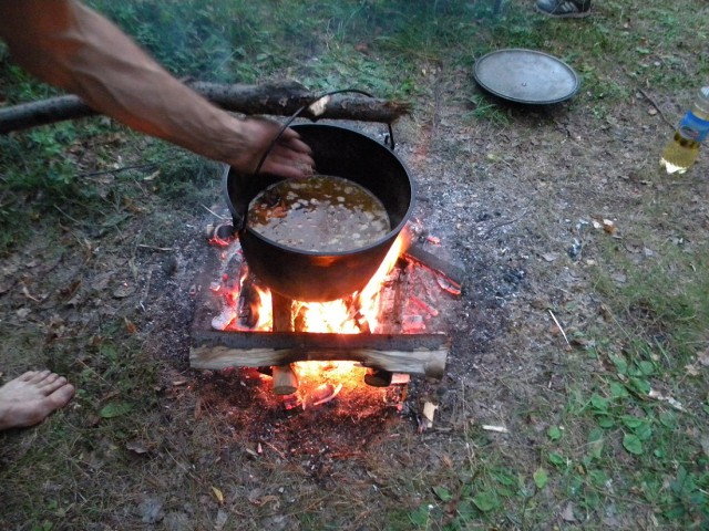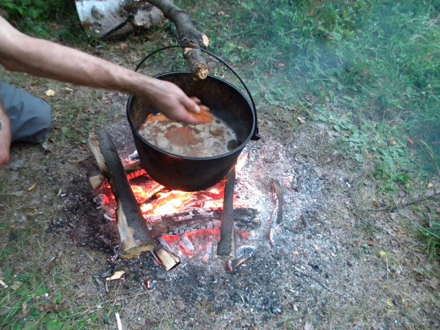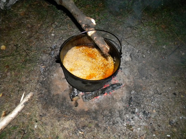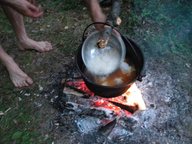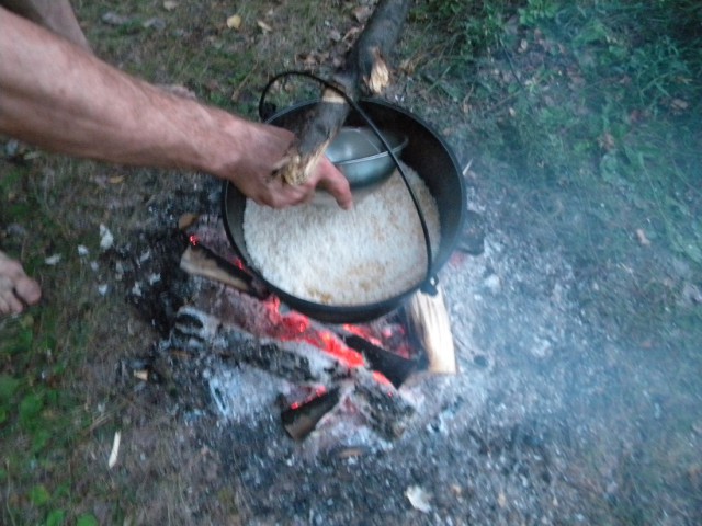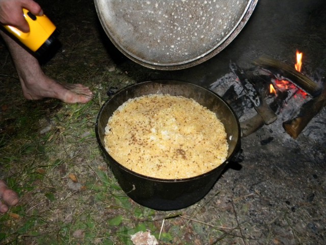 Когда вода выпарится/впитается в рис до тех пор, что он уже не шлёпает при ударе по нему, рис укладываем горкой, посыпаем растёртой в ладонях зирой и закрываем крышкой. Огонь нужен уже слабый, только от углей жара и хватит.