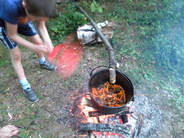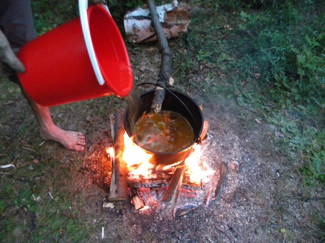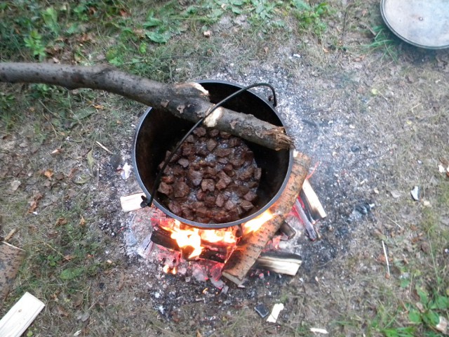 В раскалённый котел с маслом кидаем мясо и безжалостно его жарим