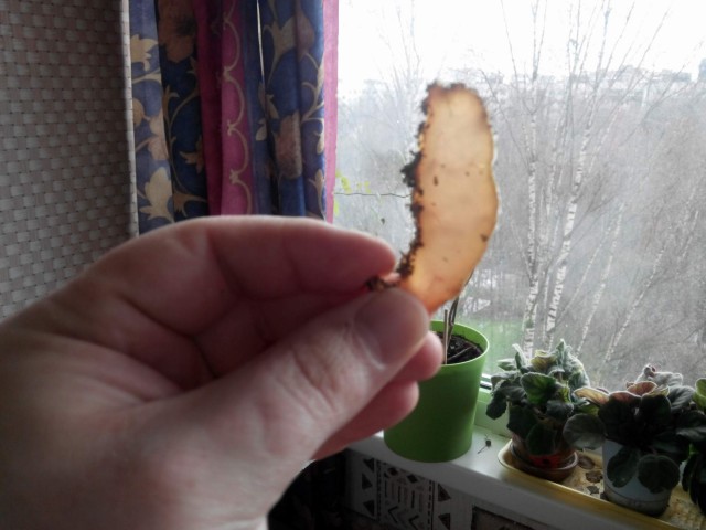 Прошло 4 дня. Мелкие куски высохли на второй день и были стресканы супругой пока меня не было дома. 1 кусок был стрескан ею буквально перед съемкой.