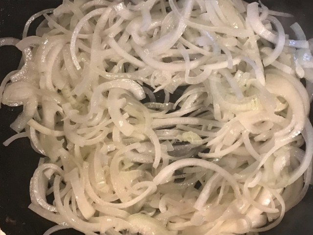 Берём две средних или одну крупную луковицу, нарезаем полукольцами.