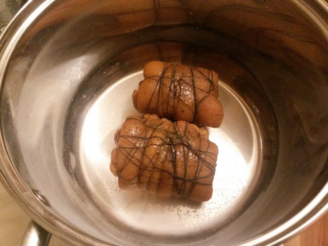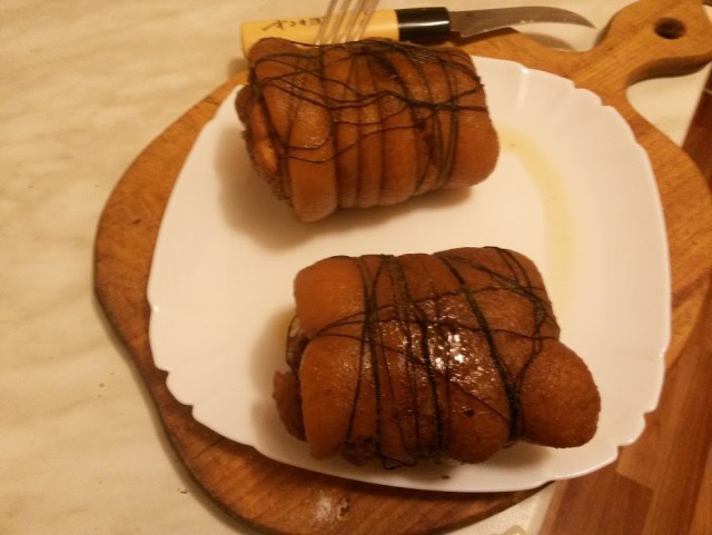 Сворачиваем куски в виде рулета и связываем нитками от раскрытия..