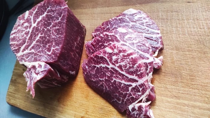 Говяжья вырезка двухмесячной сухой выдержки на сливочном масле Запостил: Viking,3-02-2021, 00:00вКулинария / Свежее Перед новым годом делал стейки из вырезки и один из самых красивых кусков забрал домой.Автор Нравится 10 Не нравится 9 Комментарии (2) Добавить комментарий Прокомментировать Введите два слова с картинки: Отправить #1 Петькин Вася Гость 3 февраля 2021 10:54 +3 Ну пиздец, рецепт, как пожарить мясо :) Ждем рецепт, как вкипятить воду Ответить #2 Алёша Гость 3 февраля 2021 17:12 0 Я правильно понимаю, что "забрал домой" - это украл с работы? Ответить