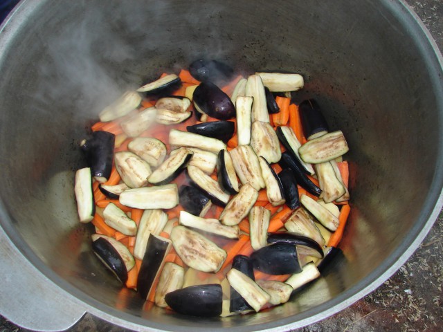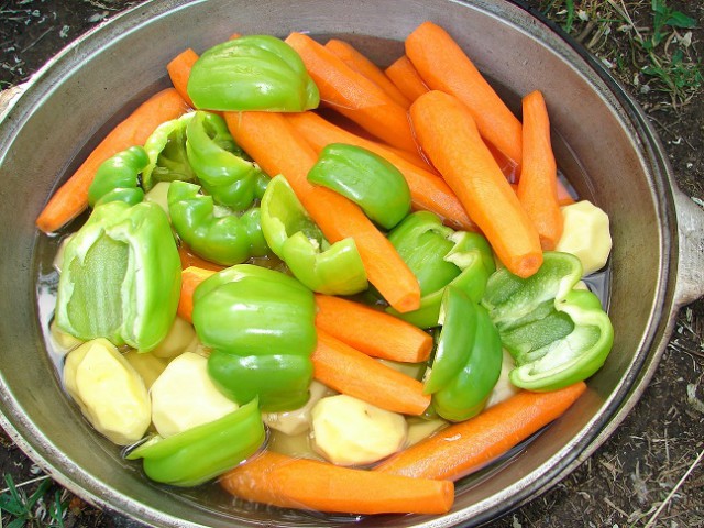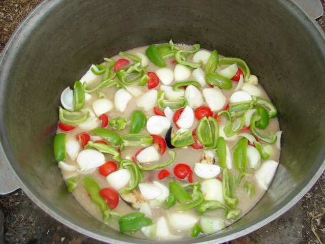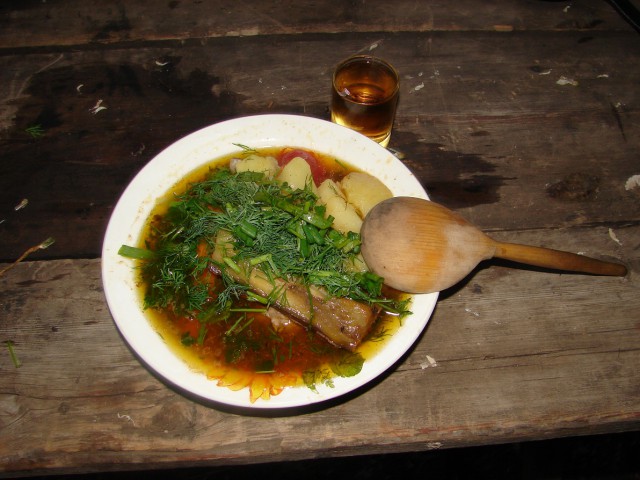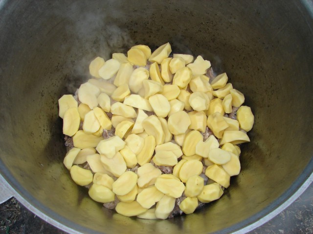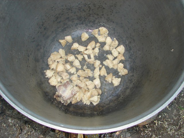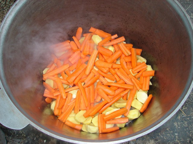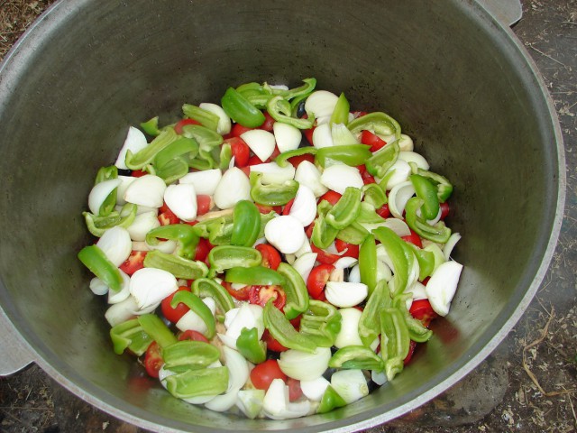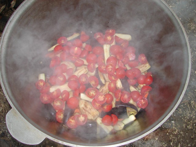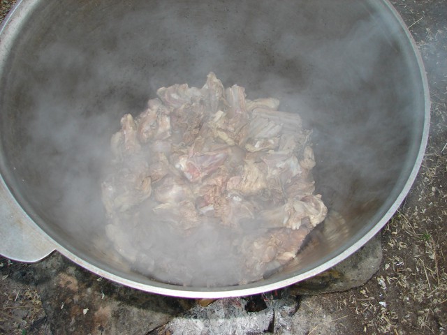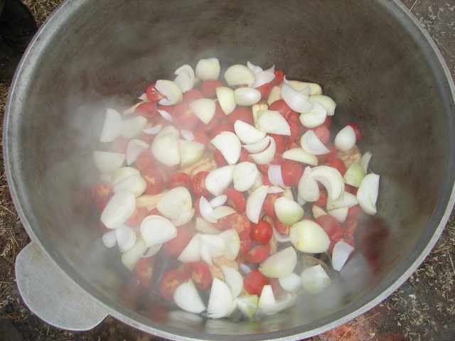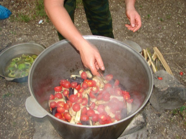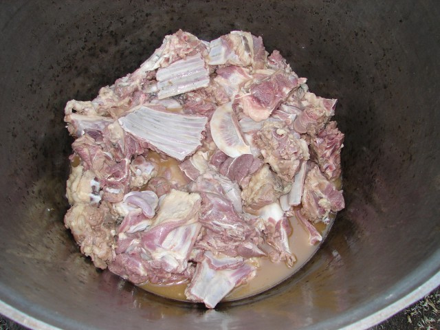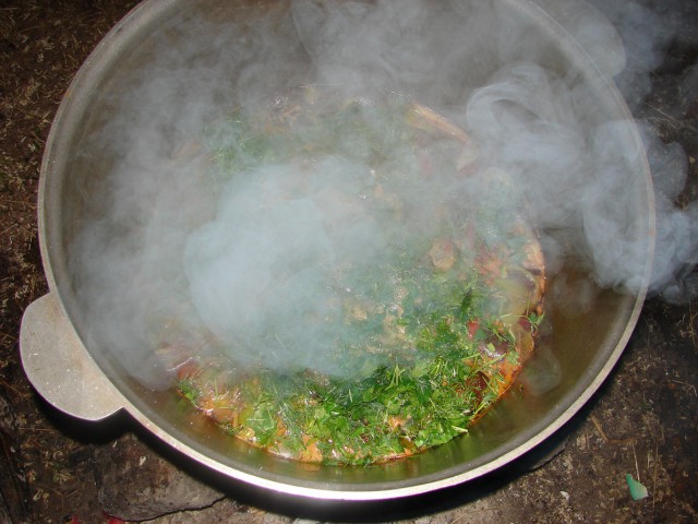Что в каких количествах нужно, сказать не могу. Всё сплошная импровизация. Готовится на костре. Живой огонь имеет свою природу.
