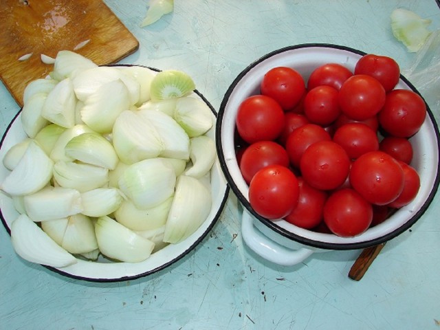 Помидоры. В процессе показались крупноватыми, поэтому резал на ходу