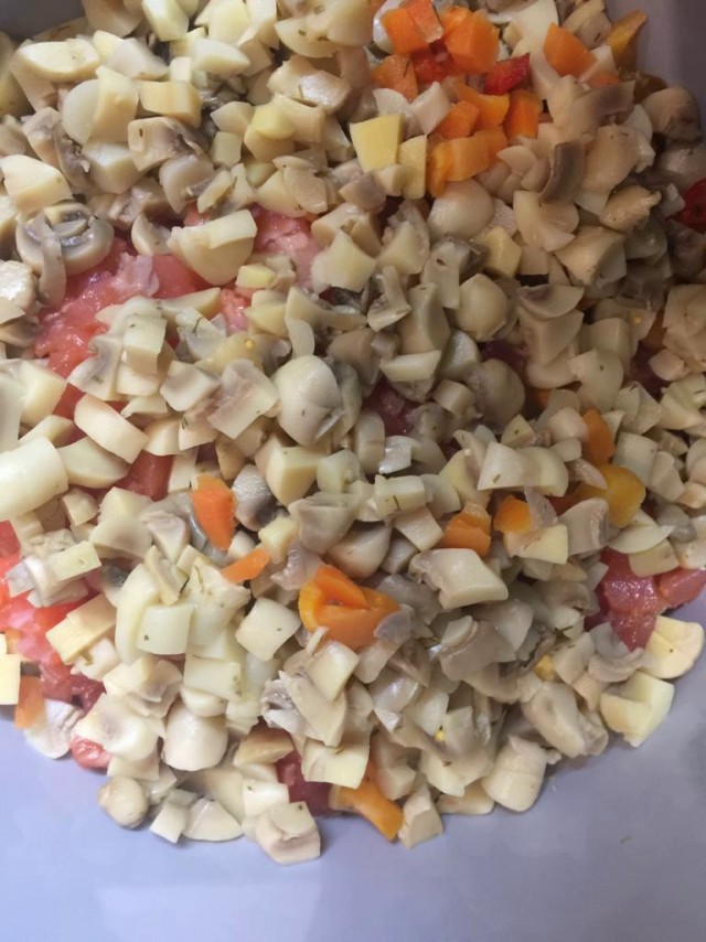 2.Банка маринованных шампиньонов (Тут лучше не экономить, взял по скидке в Окее их океевские грибы открыл банку почувствовал запах какой то пластмассы и на вкус горькие) пришлось выкинуть и бежать до КБ, там взял так же по скидке за 120 рублей баночку очень вкусных, не сочтите за рекламу.В идеале наверное были бы бондюэль, но у них ценник в районе 230-250 рублей.