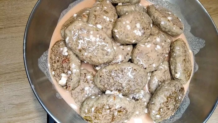 Всего вышло 28 котлет в соусе общим весом 2,45кг. Потратили мы на это количество 374,5 рубля.На 100г приходится 121,6 ккал (бжу 11; 4.6; 8.9) и 15,3 рублей. Стоимость 1 котлеты 13,4 рублей.