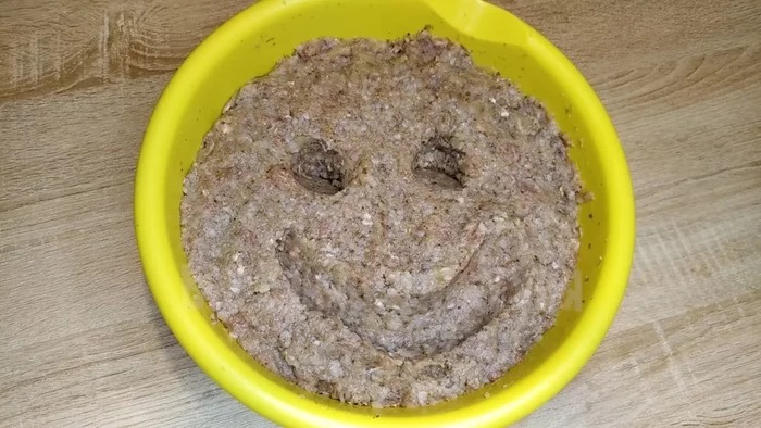 Луковицу очищаю, через мясорубку пропускаю свинину, лук (240г) и отваренную гречку. Добавляю 3 яйца, соль и любимые приправы. Фарш надо тщательно вымесить и дать постоять минут 20, чтобы соль растворилась и вкусы переженились.
