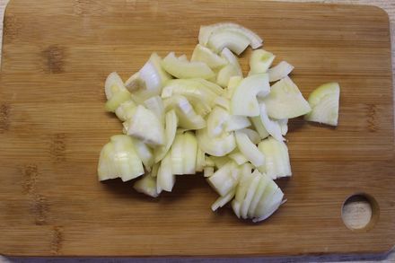 Чеснок почистить и порезать кусочками среднего размера.