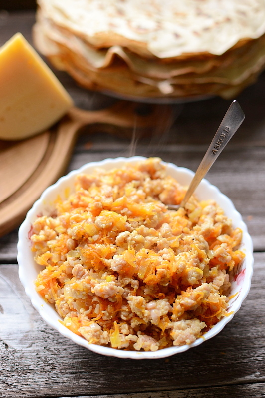 Куриное мясо можно мелко порубить ножом, а лучше пропустить через мясорубку. У меня там и грудка, и бёдрышки