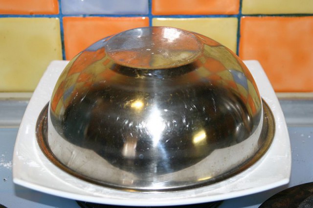 Посыпав пудрой накрываем чашкой и встряхиваем.