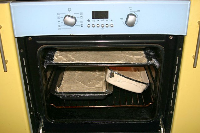 В печку на 60-70 градусов с режимом просушки или приоткрытым забралом.сушить часов 6.