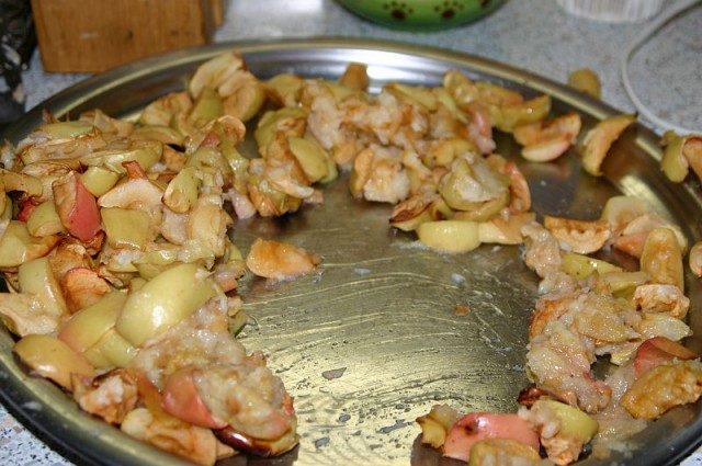 Собрав яболоки и удалив из них сердцевины запекаем их.