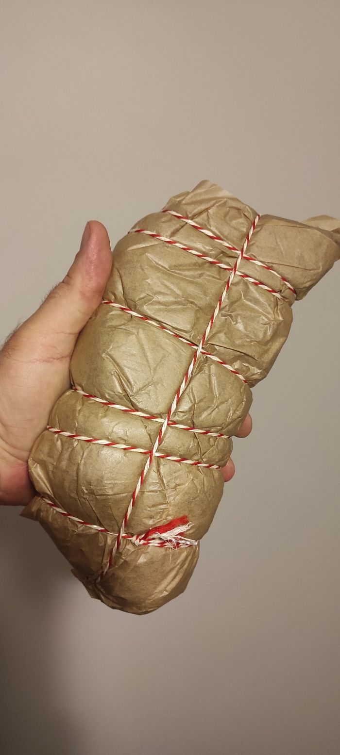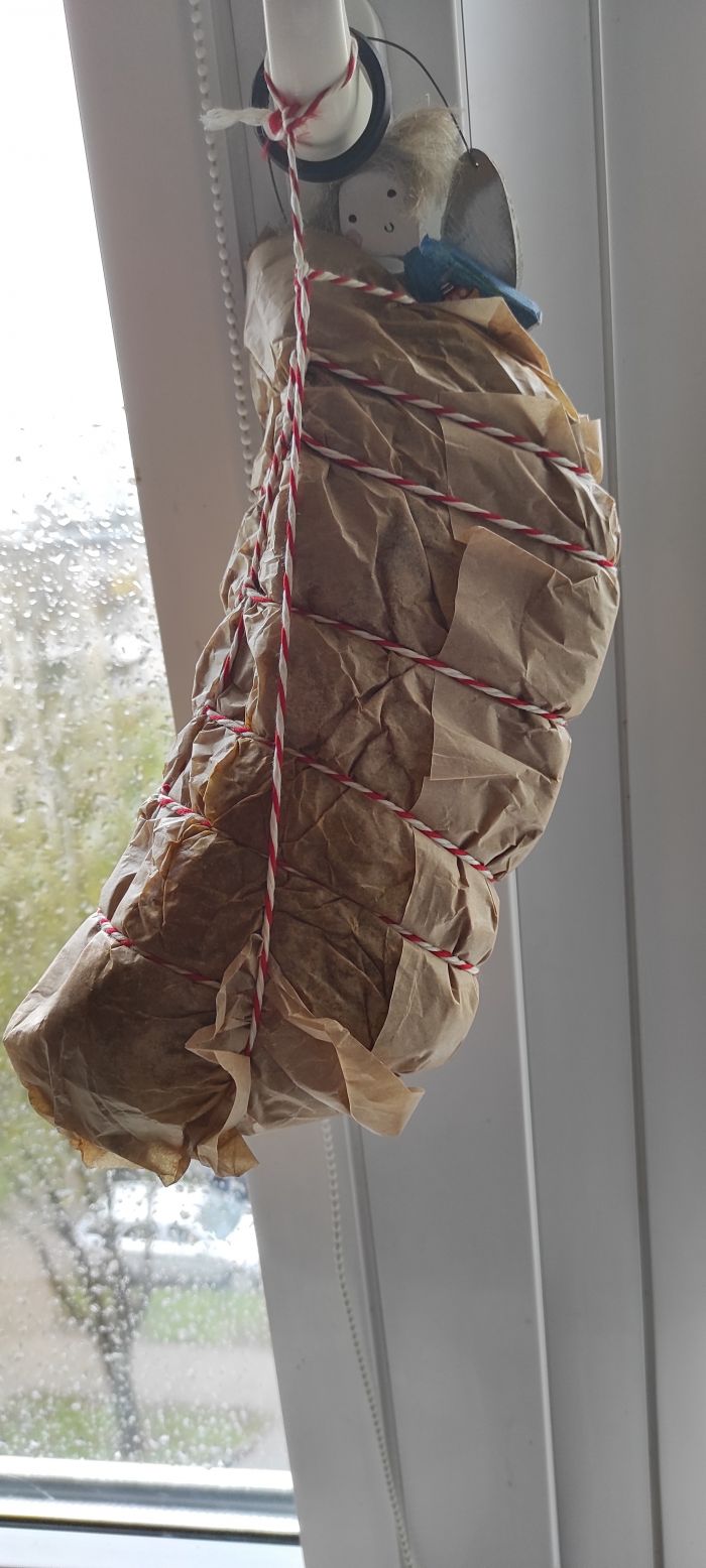 Провисели это всё пару недель и размотав бумагу обернул в пищевую плёнку(ровненько распределить высыхание), не получилось ну и ладно:)