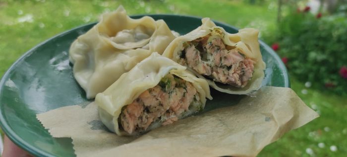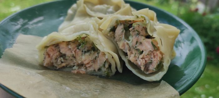 Делал сегодня манты с говядиной и увидел в холодильнике кусочек рыбы, решил сделать и с рыбой.