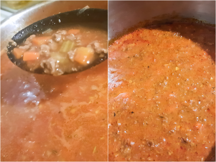 Теперь уменьшаем огонь до минимума и начинаем тушить соус, плотно закрыв кастрюлю крышкой. Этот соус нужно готовить очень-очень долго на очень-очень маленьком огне, тогда он получается безумно вкусным.