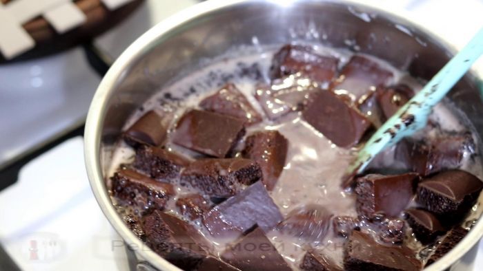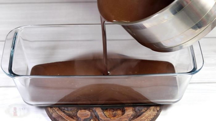 В формочку влить горячую смесь и поставить в холодильник для фиксации и охлаждения массы на 2-3 часа. Можно оставить на ночь.