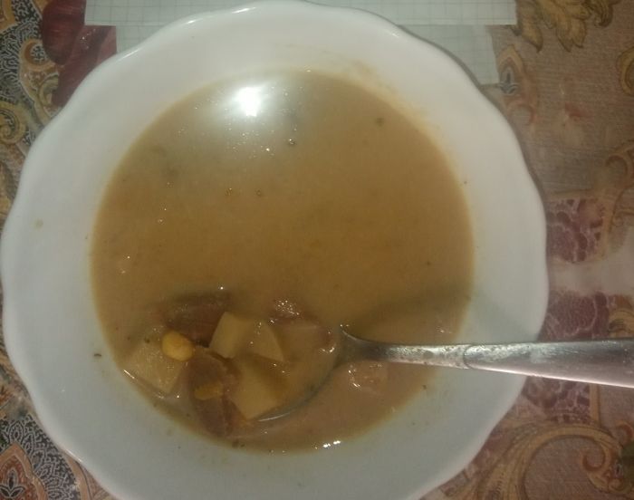 Отправляем все обратно в основную кастрюлю, хорошо перемешиваем, выключаем, и даем ему постоять под крышкой часа два. Лучше - дольше, но 2 часа вполне достаточно, что бы суп, как говорят, "настоялся".