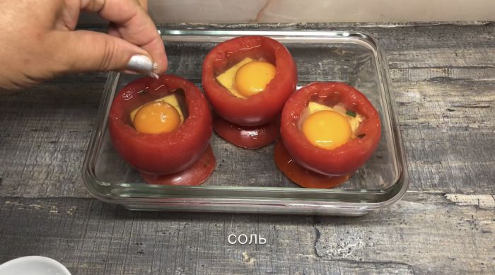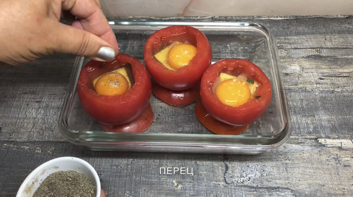 Далее ставим на них наши готовые помидоры