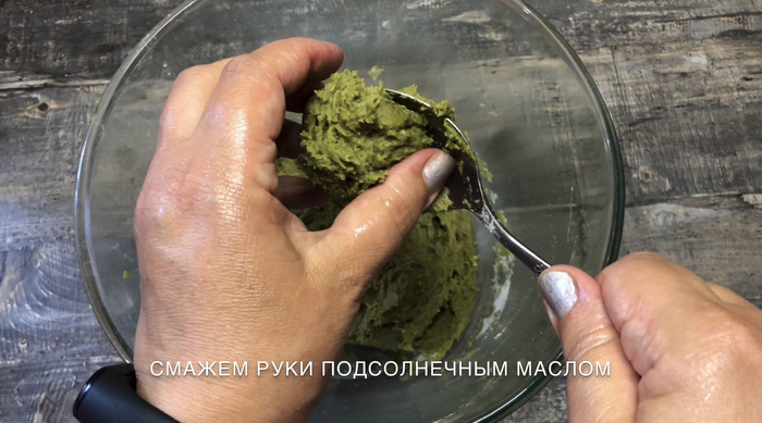 Смажем руки подсолнечным маслом и сделаем из нашего теста кружочки
