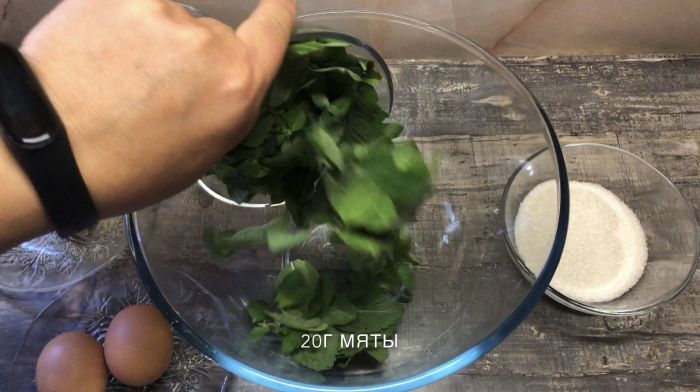 Взобьём в блендере 20г мяты и 100г сахара