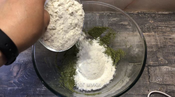 Добавим 200г муки и 10г разрыхлителя .Также пустим через блендер